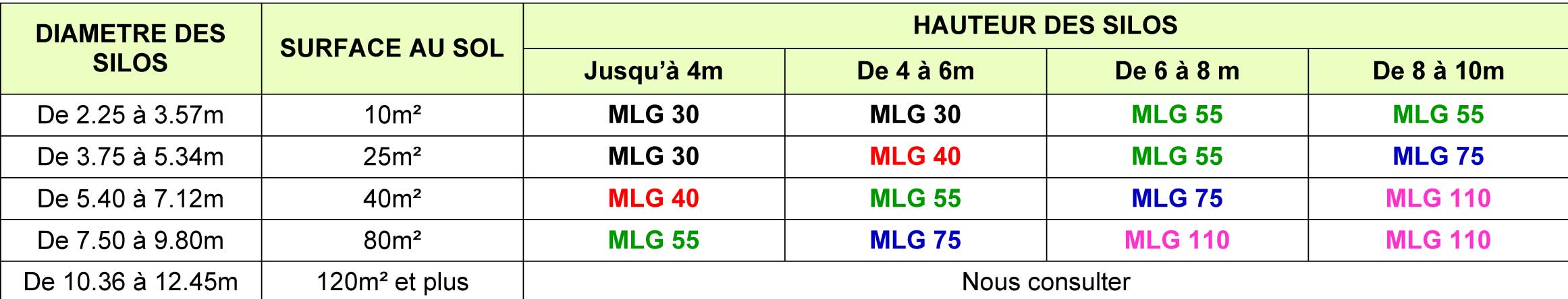 Modèles des ventilateurs à grains selon la capacité à ventiler :